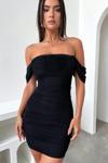Bysevensail Bss Siyah Kollu Mini Toparlayıcı Etkili Drapeli Abiye Elbise Düğün Mezuniyet Özel Gün Kıyafeti