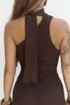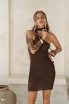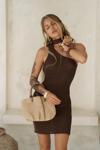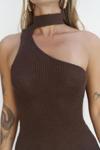 MAI STUDIOS CO. Budah Asimetrik Triko Kahve Mini Elbise
