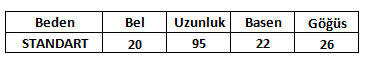 Ürün Beden Tablosu :