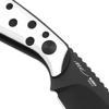 BUDDY'nin siyah beyaz G10 sapı, her koşulda kontrol sağlayan çok yönlü dokusuyla olağanüstü bir kavrama ve görsel kontrast sunar. Tam sap yapısı eşsiz bir güç sağlarken, çok bölmeli çıkıntılı yapısı, ister kamp yemeği işliyor ister paket açıyor olun, hassas bir kullanım sunar. Sadece 0,12 inç kalınlığındaki bıçak, dilimleme verimliliği ve yapısal bütünlük arasında mükemmel bir denge sunar.