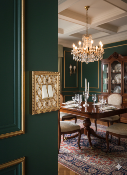 Bufer Boğaziçi 1980’ler Antika Komütatör - Sıva Altı İkili Işık Anahtarı, Nostaljik Altın Kafes ve Sedef Dokulu Retro Elektrik Düğmesi