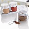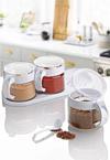 BUFFER® Beyaz 3'lü Standlı Kapaklı Kaşıklı Cam Hava Sızdırmaz Baharatlık Takımı KC-386