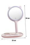 BUFFER® Kedi Kulaklı Telefon Standlı Yuvarlak Dokunmatik Led Ayarlı Masa Üstü Makyaj Aynası