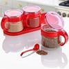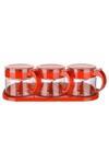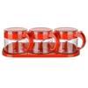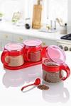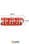 BUFFER® Kırmızı 3'lü Standlı Kaşıklı Cam Baharatlık Takımı