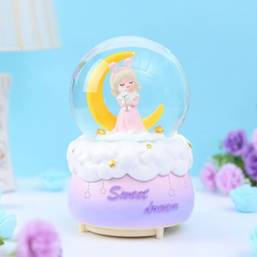 Buffer ® Pilli Işıklı Müzikli Kar Küresi–Hilal Ay Önünde Prenses Figürlü Eğlenceli Masaüstü Biblo, LE