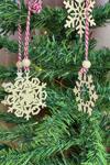 Diyar-ı Fırsat BUFFER® Pilli Peri Ledli 6 Parça Kırmızı Beyaz İpli Kar Tanesi Model Ahşap Yılbaşı Ağaç Süsü