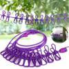 BUFFER® Taşınabilir Seyahat Çamaşır İpi 12 Klipsli Lastikli Çamaşır Mandalları