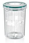 Zeytinlerinizi, küçük boy domates ve salatalıklarınızı kolaylıkla yıkayıp suyunu süzebileceğiniz, kovası ile sonrasında saklamak üzere içine yerleştirebileceğiniz saklama kabı çok kullanışlı ve her mutfakta bulunması gereken parçalardan