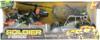 Set içerisinde 4 adet asker figürü, helikopter, buggy, dikenli tel ve çeşitli silahlar mevcuttur.
