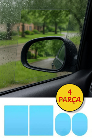 4 Parça Araç Ayna Yağmur Kaydırıcı Film ve Cam Buğu Önleyici Su Geçirmez Koruyucu Seti