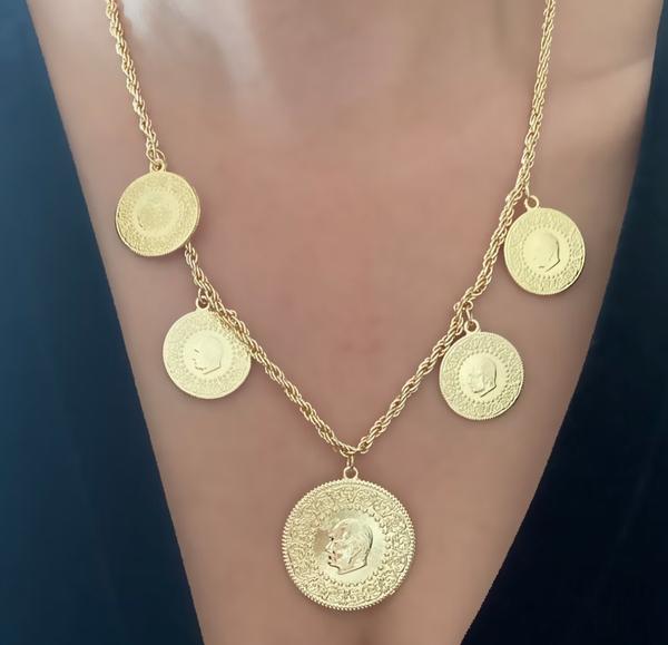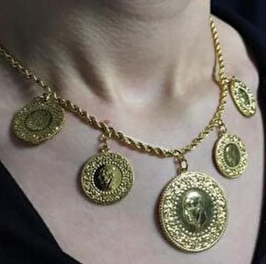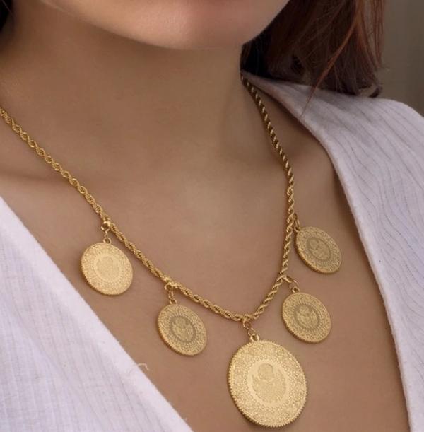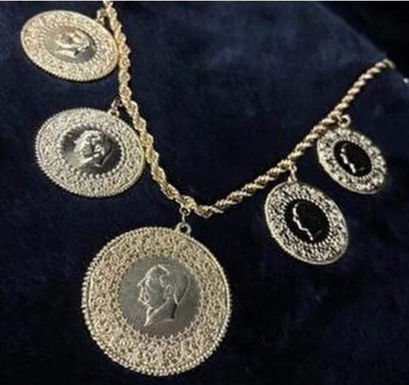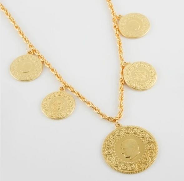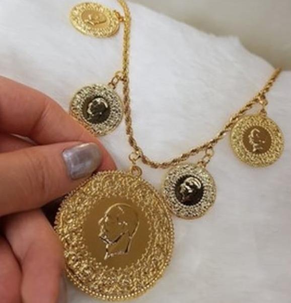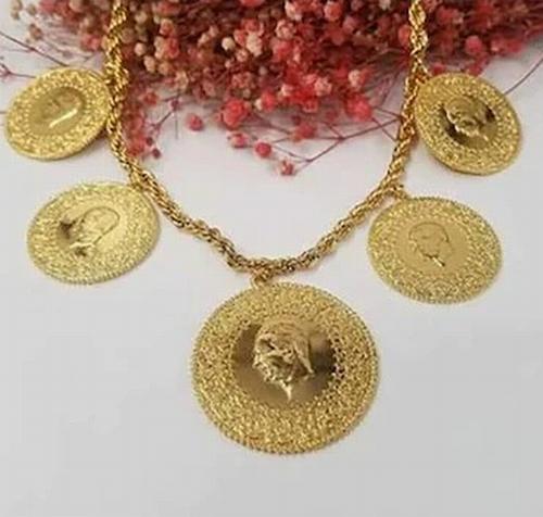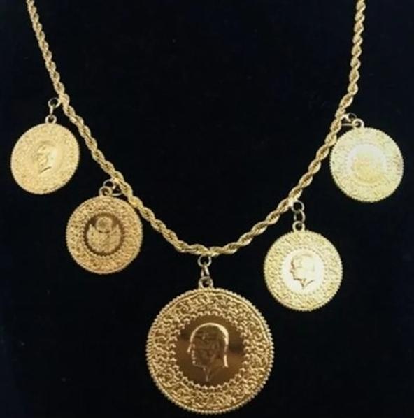 Gerçek Altın Görünümlü Beşibir Yerde 1. Kalite imitasyon Kolye (Halat Zincirli)