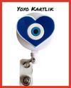 Gençlerin enerjisini ve tarzını yansıtan kalp nazar boncuğu tasarımıyla, gençlerin beğenisine sunulan yoyo yaka kartlığı