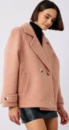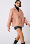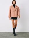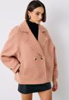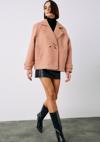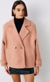 Ön düğmeli kapama, geniş ceket yaka, geniş kemerli kol, iç astarlı, buklet kısa kaban.