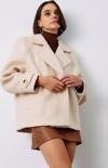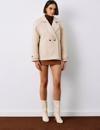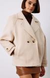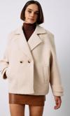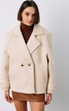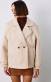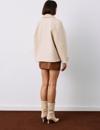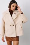 Ön düğmeli kapama, geniş ceket yaka, geniş kemerli kol, iç astarlı, buklet kısa kaban.
