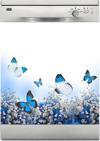 Sticker Art Bulaşık Makinesi Sticker Kaplama Beyaz Eşya Kaplama Beyaz Çiçek Mavi Kelebek