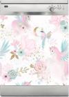 Bulaşık Makinesi Sticker Kaplama Beyaz Eşya Kaplama Pembe At ve Kuş
