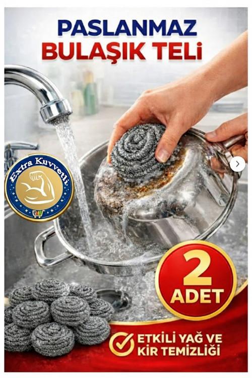 Ürün Adı: Bulaşık Teli Ovma Teli 2 Adet Pratik Ekonomik Toptel Sürtme Teli Lavabo Mutfak Banyo Temizlik Teli Sert Yüzey İçin