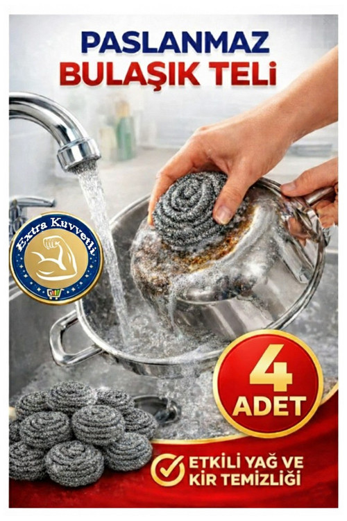 Ürün Adı: Bulaşık Teli Ovma Teli 4 Adet Pratik Ekonomik Toptel Sürtme Teli Lavabo Mutfak Banyo Temizlik Teli Sert Yüzey İçin