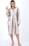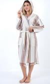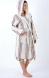 Geleneksel Buldan el tezgahlarında üretilen pamuk peştemal ürünlerimizden olan Adelina Peştemalden dikilmiştir. Kaliteli Adelina Peştemal bornoz