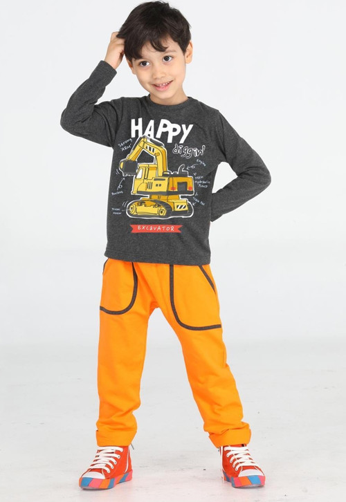 Pamuklu kumaşlardan üretilmiştir.T-shirt ön panel baskılıdır,özel nakış deseni işlenmiştir,Alt pantolonu baggy kesim olup önden ceplidir.Toplam 2 parçadan oluşan Erkek çocuk takım.üst %80 pamuk %20 polyester ,Alt %100 Pamuk