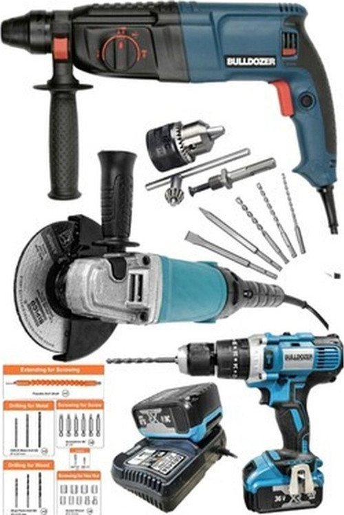 Bulldozer Inşaat Seti 36V Şarjlı Matkap 1600W Devirli Avuç Taşlama 3000W Kırıcı Delici