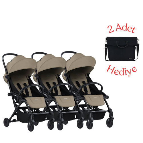Connect³ Üçüz Bebek Arabası Black - Sand & Yan Bakım Çantası Hediyeli