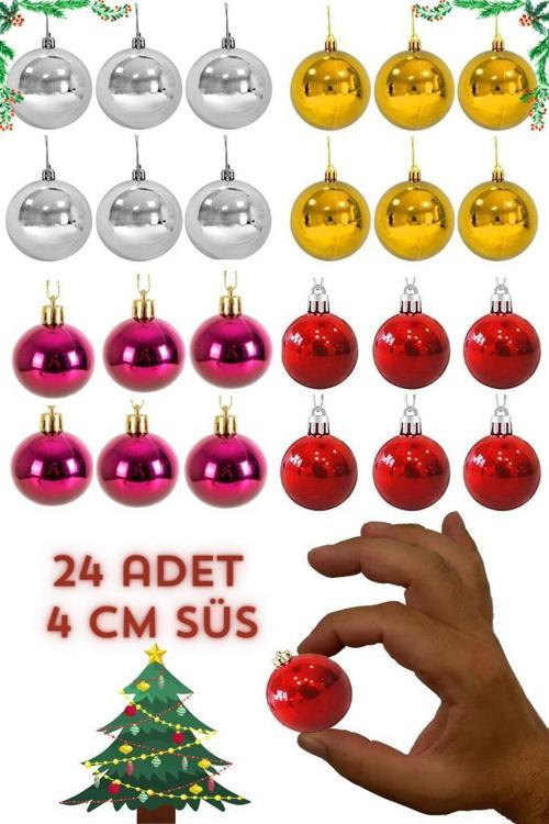 buradanaldım 24 Parça Cici Top, Yılbaşı Ağacı Süs Topları, 4cm Çam Ağacı Dekor Süsleme Parlak Yılbaşı Seti