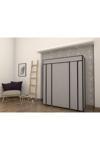 Klasik tasarımıyla her yatak odasına uyum sağlayan gri çift yandan raflı bez dolap, zamansız bir şıklık sunar