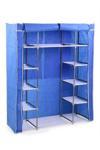 Klasik tasarımıyla her yatak odasına uyum sağlayan mavi çift yandan raflı bez gardırop, zamansız bir şıklık sunar