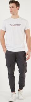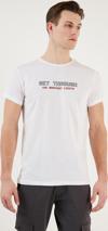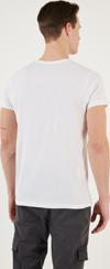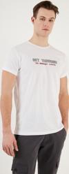 Basklı Bisiklet Yaka % 100 Pamuklu Slim Fit Erkek T Shirt 541GET BEYAZ