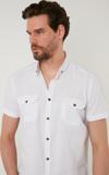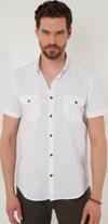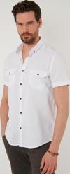 Düğmeli Yaka % 100 Pamuk Slim Fit Cepli Erkek Gömlek CF21S111153 BEYAZ