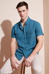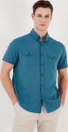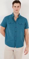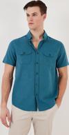 Düğmeli Yaka % 100 Pamuk Slim Fit Cepli Erkek Gömlek CF21S111153 PETROL