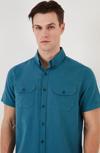 Buratti Düğmeli Yaka % 100 Pamuk Slim Fit Cepli Erkek Gömlek CF21S111153 PETROL