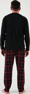Buratti Ekoseli Cepli Beli Lastikli % 100 Pamuk Regular Fit Erkek Pijama Takımı 6572001 SİYAH-BORDO