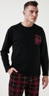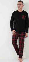 Ekoseli Cepli Beli Lastikli % 100 Pamuk Regular Fit Erkek Pijama Takımı 6572001 SİYAH-BORDO