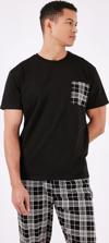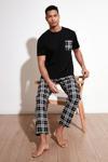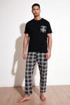 Ekoseli Pamuklu Regular Fit Kısa Kollu Erkek Pijama Takımı 6572002 SİYAH-BEYAZ