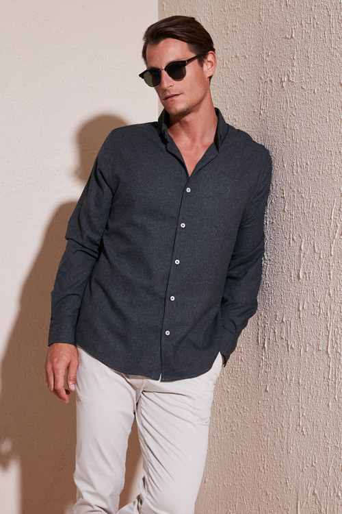 Pamuklu Regular Fit Düğmeli Yaka Kışlık Erkek Gömlek CF24W127079 ANTRASİT