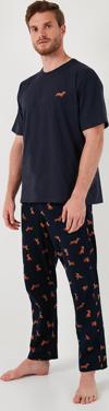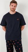 Pamuklu Regular Fit Kısa Kollu Erkek Pijama Takımı 6572012 LACİVERT