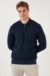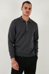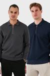 Buratti Pamuklu Regular Fit Yarım Fermuarlı 2'li Paket Polo Yaka Erkek Sweat 5905789S2 ANTRASİT-İNDİGO