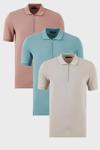 Buratti Pamuklu Regular Fit Yarım Fermuarlı 3'lü Paket Erkek Polo Yaka T Shirt 5902915S3 Pudra-Gri-Mavi