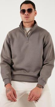Buratti Pamuklu Regular Fit Yarım Fermuarlı Dik Yaka Erkek Sweat 59052592 Vizon Yeşili