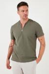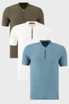 Buratti Pamuklu Regular Fit Yarım Fermuarlı Kolej Yaka 3'lü Paket Erkek T Shirt 5902653S3 Beyaz-Haki-Mavi