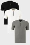 Buratti Pamuklu Regular Fit Yarım Fermuarlı Kolej Yaka 3'lü Paket Erkek T Shirt 5902653S3 Siyah-Beyaz-Açık Haki