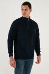 Pamuklu Relaxed Fit Yarım Fermuarlı Dik Yaka Erkek Sweat 5901232 LACİVERT