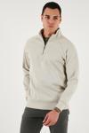 Buratti Pamuklu Relaxed Fit Yarım Fermuarlı Dik Yaka Erkek Sweat 5901232 TAŞ