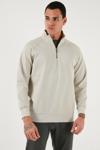 Pamuklu Relaxed Fit Yarım Fermuarlı Dik Yaka Erkek Sweat 5901232 TAŞ