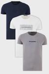 Buratti Pamuklu Slim Fit Bisiklet Yaka Baskılı 3'lü Paket Erkek T Shirt 541S31 Açık Gri-Beyaz-Lacivert