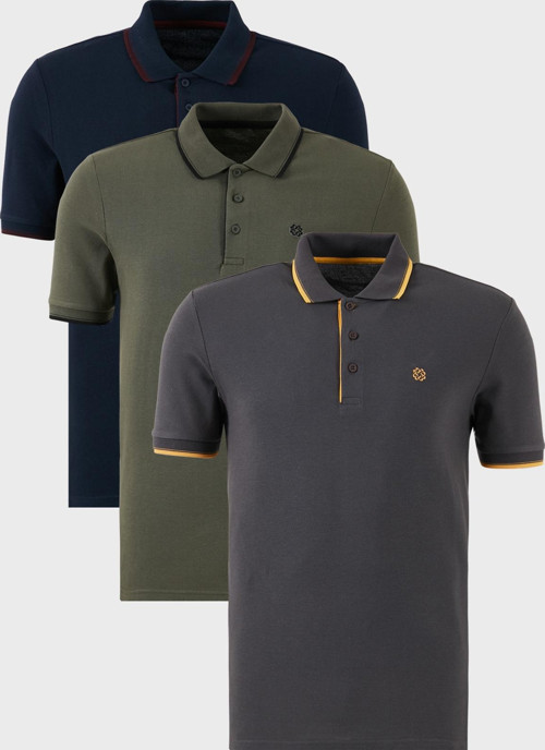 Buratti Pamuklu Slim Fit Şerit Detaylı Düğmeli Polo Yaka 3'lü Paket Erkek T Shirt 5902118S3 ANTRASİT-HAKİ-LACİVERTBORDO