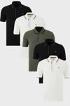 Buratti Pamuklu Slim Fit Şerit Detaylı Düğmeli Polo Yaka 5'li Paket Erkek T Shirt 5902118S5 Siyah-Siyah-Beyaz-Beyaz-Haki