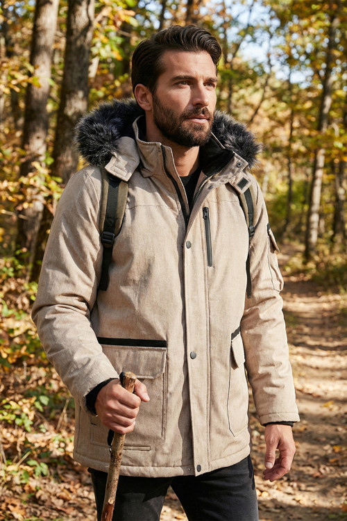Peluş Astarlı Suya ve Rüzgara Dayanıklı Soğuk Geçirmez Slim Fit Erkek Mont 5711051 TAŞ